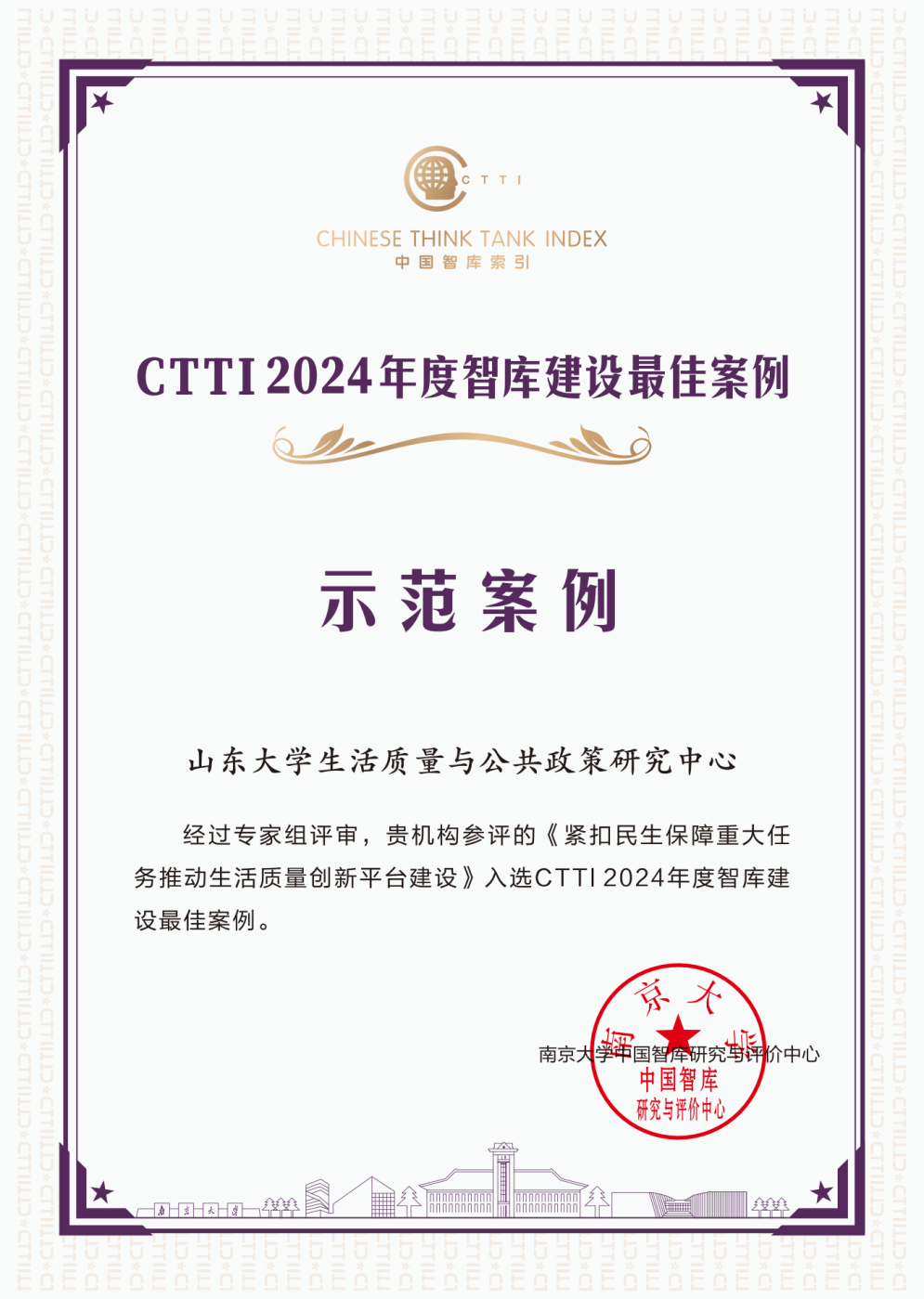 生活质量与公共政策研究中心于2022年入选中国智库索引(CTTI)来源智库,并有多项成果荣获优秀成果奖。