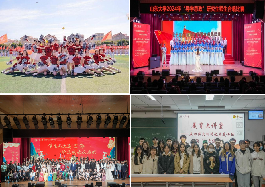 体育砺志,锤炼强健体魄。学院坚持体魄与人格并重,组建篮球队等各类体育兴趣团体6支,开展球类迎新赛、定向越野大赛、户外活动大课堂等趣味体育活动26场,彰显体能、体格、体魄的健康活力。2024年度,学院获山大“导学思政”研究生师生羽毛球赛青岛赛区赛冠军,思壮杯羽毛球比赛亚军,研究生篮球赛亚军,“山大杯”系列球赛乒乓球女团冠军、女篮联赛季军、足球赛亚军、网球赛双打亚军,导学思政奖等好成绩。学院学子代表学校出战中国大学生沙滩排球锦标赛,山东省第大学生运动会网球比赛、排球比赛,青岛市首届大学生跳绳比赛等高水平赛事,屡获佳绩,为校争光。同时在校区运动会上,学院获得包括“体育道德风尚奖”在内的7项荣誉,体育赛事屡创新高,诠释了“更高、更快、更强”的体育精神。