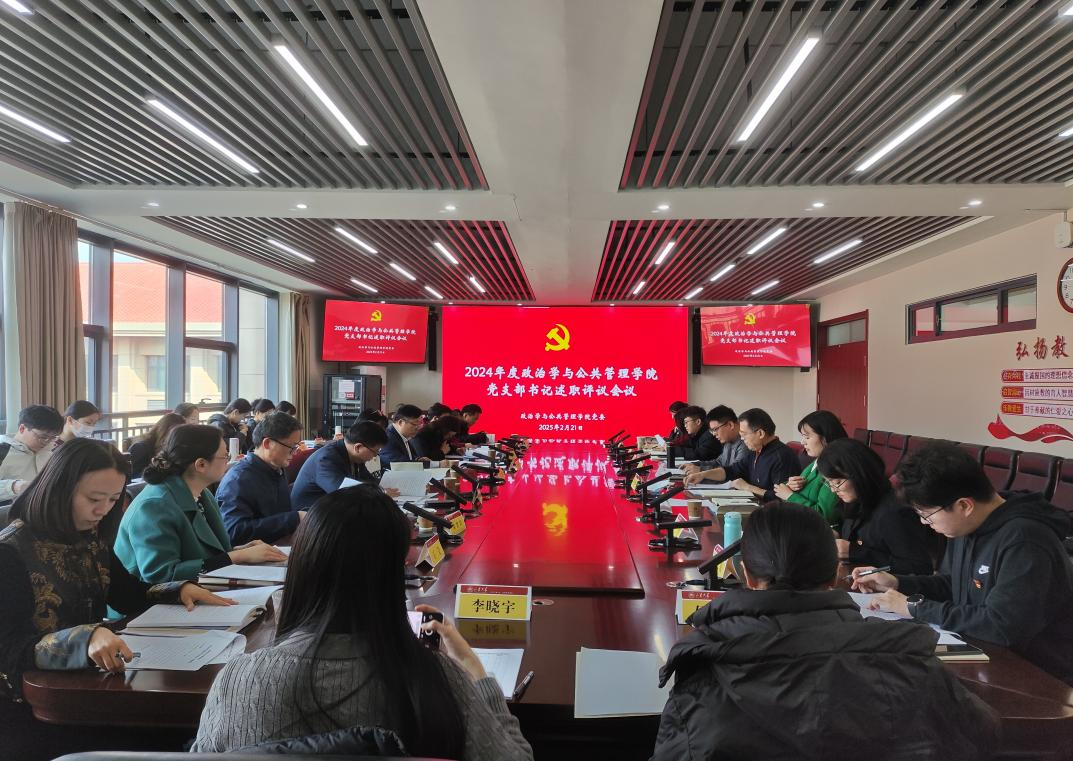 举行2024年度党支部书记抓基层党建工作述职评议会议。学院党委书记李海燕主持会议。学校第十党建考核组副组长、前沿交叉科学青岛研究院党委副书记张杨、组员王发东到会指导。学院院长马奔及其他领导班子成员、党委委员、党支部书记和师生代表参加会议。