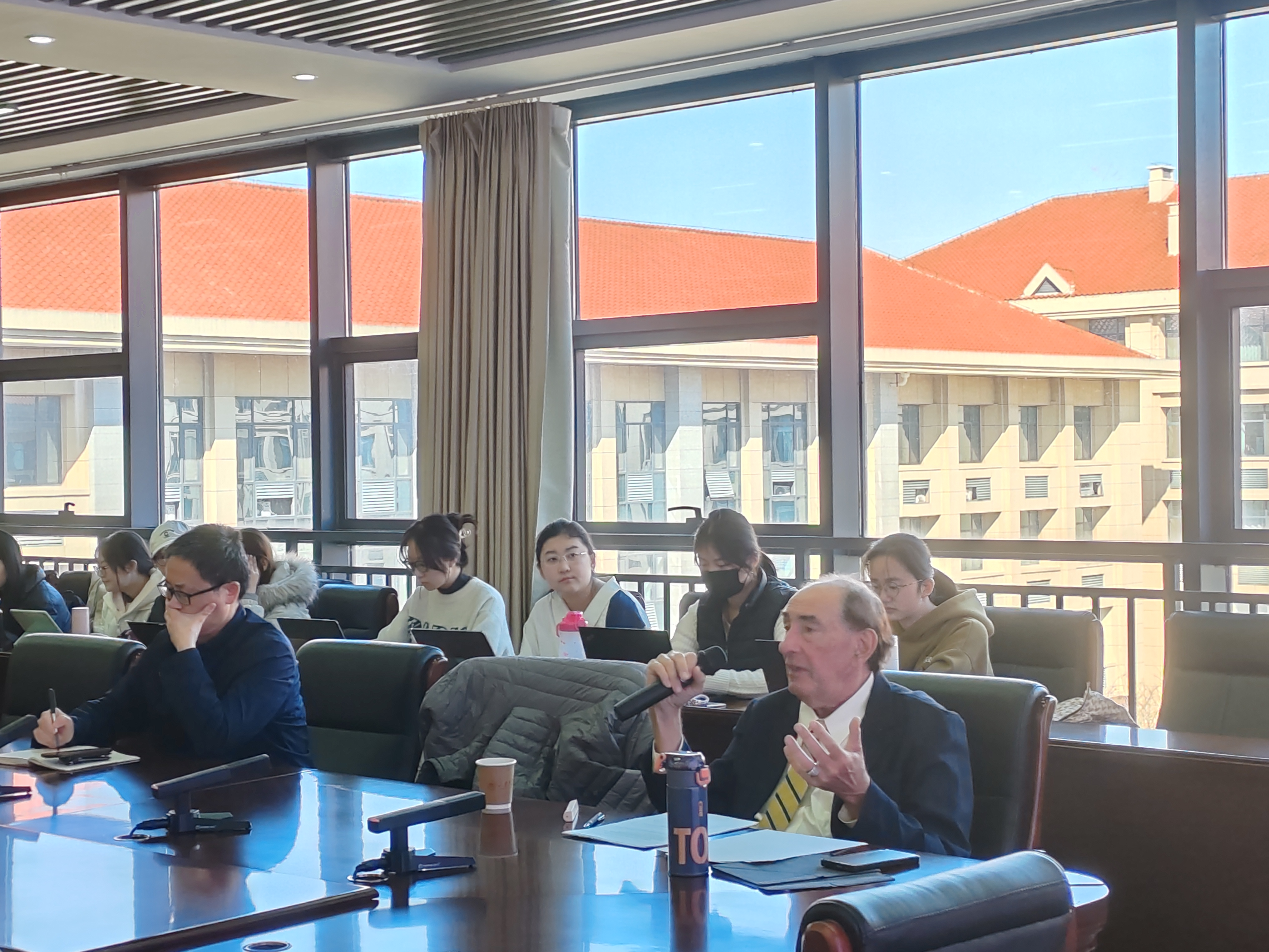 在互动交流环节中,师生们围绕AI对于金砖国家未来发展的影响、金砖国家在全球金融体系中建立新秩序的具体路径等问题展开了热烈的讨论与交流,其中与谈人朱林旭博士指出金砖国家需要在AI领域制定共同规则,以避免被西方主导的技术标准所限制,同时推动一个更加公平和包容的技术发展框架。盛力教授对Georgy Toloraya教授的到来和分享表示感谢,并指出此次讲座为师生深入了解金砖国家的发展动态提供了宝贵视角,鼓励师生持续关注金砖国家在全球舞台上的发展与变革,积极开展相关研究。