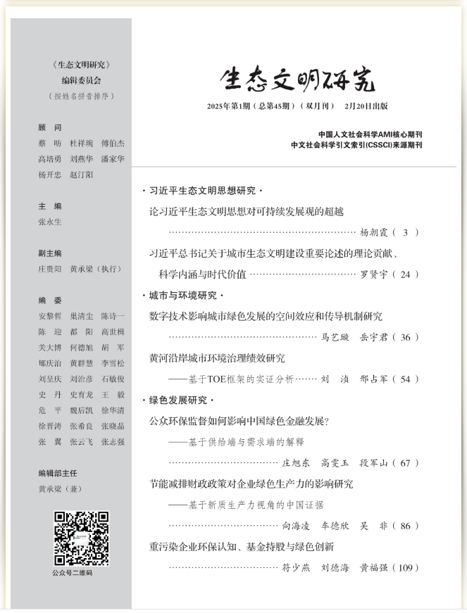 智慧国家治理实验室主任邢占军教授团队在《生态文明研究》发表题为“黄河沿岸城市环境治理绩效研究——基于TOE框架的实证分析”的文章。
