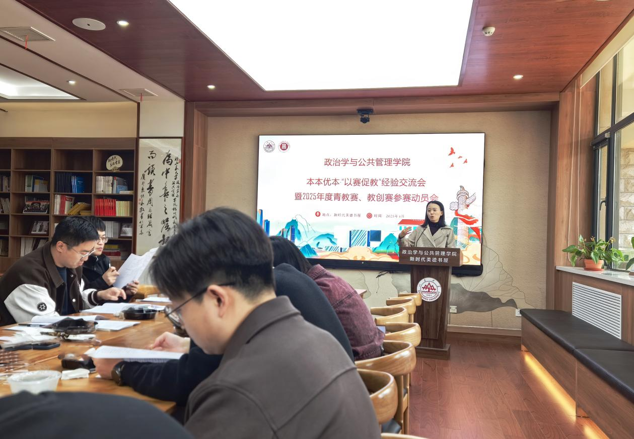 于青岛校区华岗苑南楼新时代美德书屋举办本本优本·“以赛促教”经验交流会暨2025年度青教赛、教创赛参赛动员会。本次会议由学院副院长赵婷主持,会议邀请2024年度青年教师教学比赛一等奖获得者李梦丹、2024年度青年教师教学比赛二等奖获得者赵玙佳、2023年度青年教师教学比赛二等奖获得者程龙,以及第五届教师教学创新大赛二等奖获得者庞敏分享参赛经验,学院青年教师参会交流。