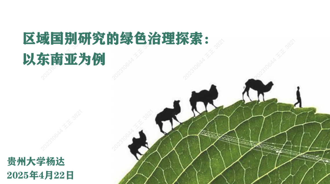亚太研究所主办,亚太所亚太大国关系与地区安全研究中心承办的“社科与人文”系列讲座第三十三讲在线上举办。讲座题目为“区域国别研究的绿色治理探索:以东南亚为例”,由贵州大学东盟研究院院长杨达教授主讲。亚太所亚太大国关系与地区安全研究中心主任王鹏权副教授主持讲座,亚太所副所长赵玙佳副教授、亚太所亚太地区环境与中国周边外交研究中心主任李昕蕾教授担任与谈人。