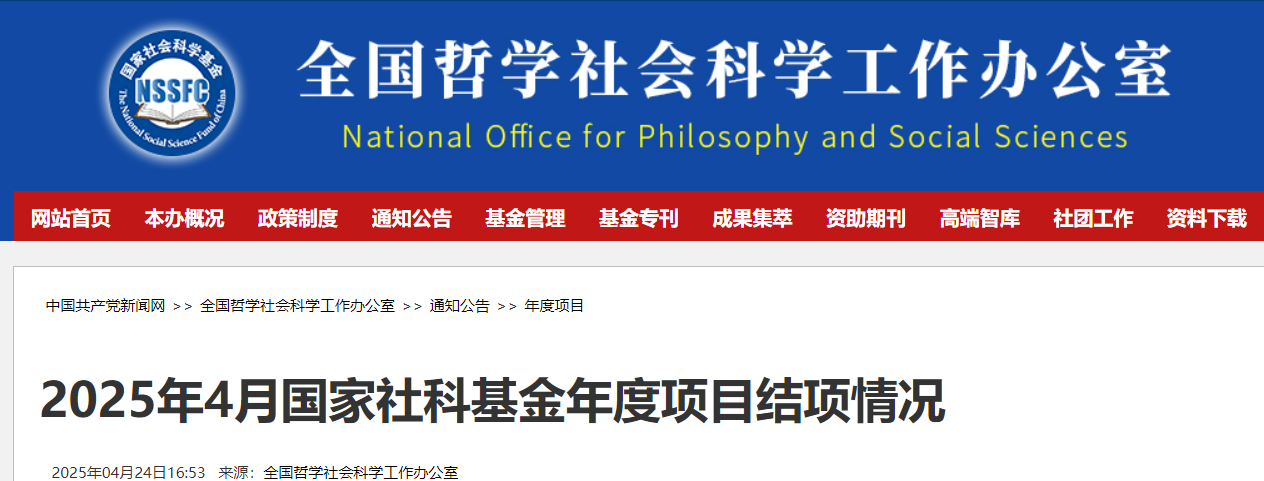 近日,全国哲学社会科学工作办公室公告了2025年4月国家社科基金年度项目结项情况,由av视频