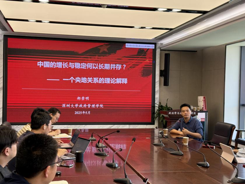 在华岗苑南楼536会议室举办了题为“中国的增长与稳定何以长期并存——一个央地关系的理论解释”的专题讲座。本次讲座由深圳大学政府管理学院特聘研究员郑崇明教授主讲,av视频
