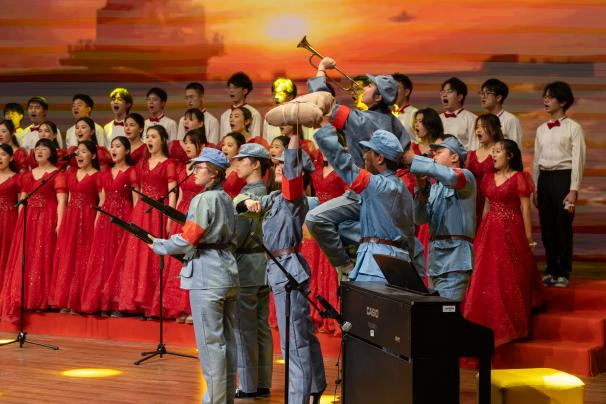 师生同台,以饱满的热情、专业的水准和默契的配合,演绎了《世界赠予我的》和《在灿烂的阳光下》两首曲目。《世界赠予我的》歌声温暖治愈,唱出对生活馈赠的感恩,各声部和谐交融,如潺潺溪流滋润心灵;《在灿烂的阳光下》则以激昂旋律,诉说对党的赞颂与热爱。