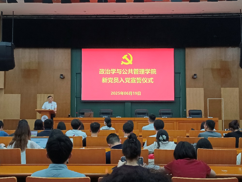 在青岛校区华岗苑南楼举行新党员入党宣誓仪式。学院党委书记李海燕出席会议并讲话,会议由学院党委副书记石莹主持。