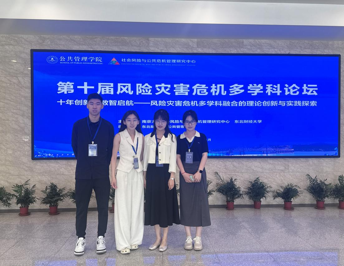 6月20日至22日,“第十届风险灾害危机多学科论坛”在东北财经大学举行。本次论坛由南京大学社会风险与公共危机管理研究中心及东北财经大学联合主办,东北财经大学公共管理学院承办。论坛设有主旨报告、期刊主编论坛和平行论坛等环节,围绕“十年创新,数智启航—风险灾害危机多学科融合的理论创新与实践探索”展开深入交流和研讨。马奔教授团队博士研究生王乐雨、陈纪淳,硕士研究生郎颂、辛鲁宁参加会议并在平行论坛上做口头汇报。