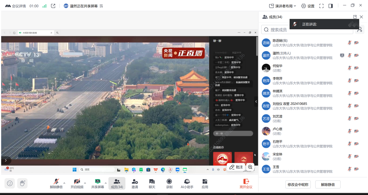管理类硕研第二党支部书记孙悦说,当《义勇军进行曲》奏响、五星红旗冉冉升起,庄严的阅兵仪式在我们眼前展开。阅兵式上,整齐划一的方阵和先进的武器装备,展示了我们国家日益增强的国防实力和综合国力。这次阅兵是对历史的回响,也是对未来的和平宣言。作为青年一代,我们要坚定理想信念,学好专业本领,将个人理想融入党和国家的事业之中,时刻准备着为实现中华民族伟大复兴的中国梦贡献智慧和力量。