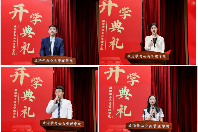 新生代表2025级行政管理专业本科生翟凡杰、2025级应急管理专业硕士研究生马正伦、2025级MPA研究生乔巧、2025级统一战线学专业博士研究生李忠涛先后发言。他们结合自身专业背景与成长愿景,表达了扎根实践、奋发作为的共同决心,立志在最美的青春年华中砥砺前行,以奋斗之笔书写无愧于心、无愧于时代、无愧于青春的崭新篇章。