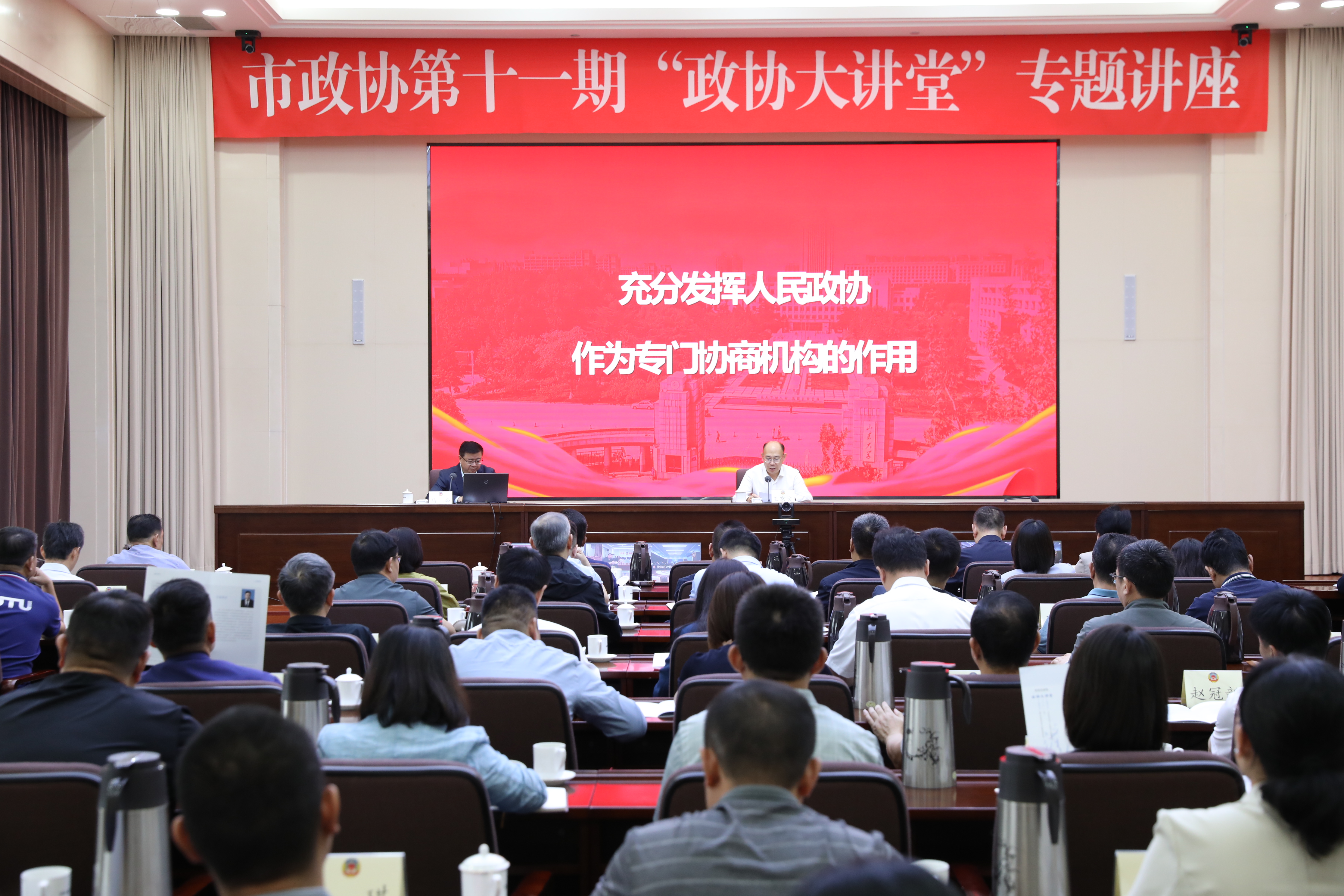揭牌后,马奔在市政协机关围绕“充分发挥人民政协作为专门协商机构的作用”作“政协大讲堂”专题讲座。