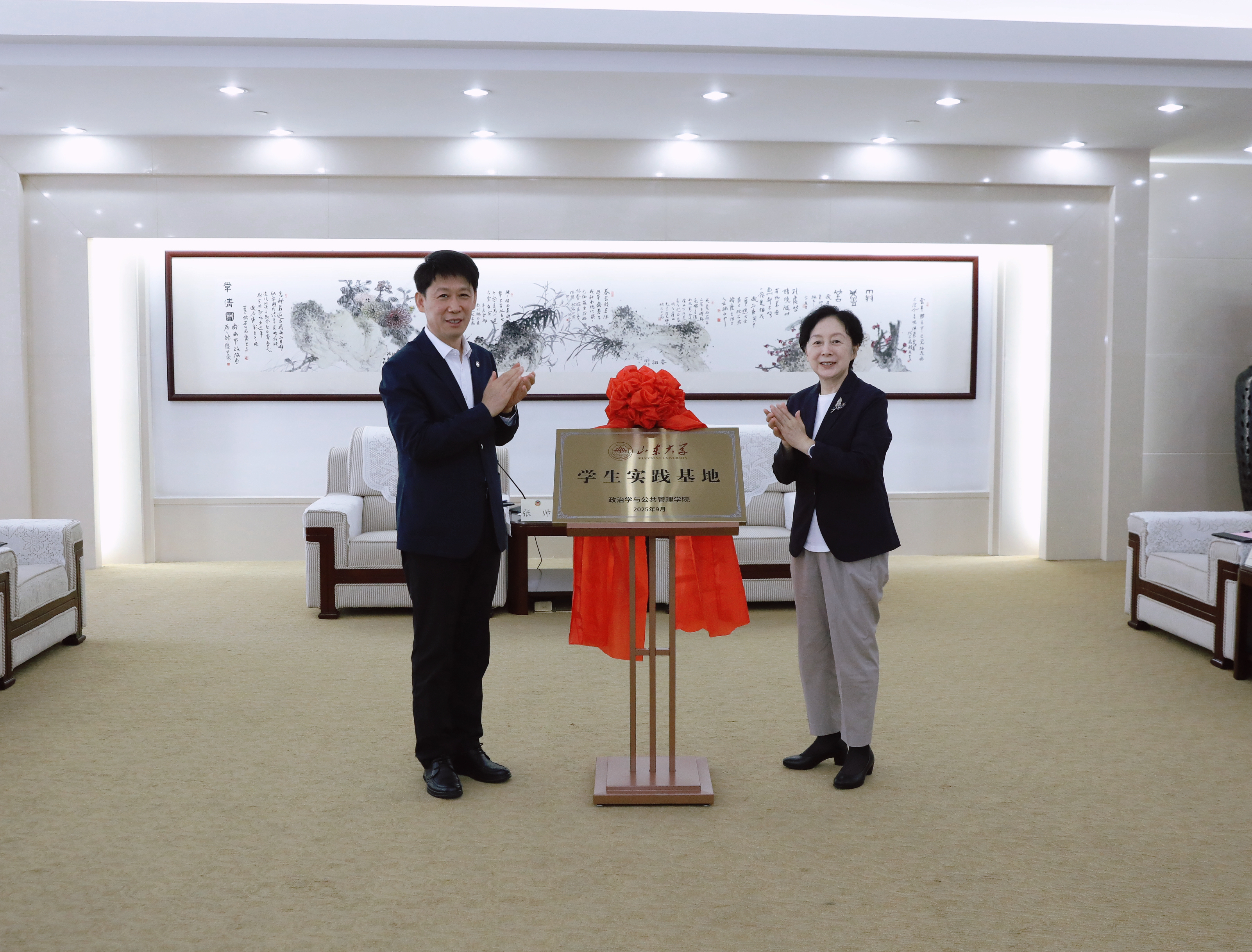 与济南市政协举行学生社会实践基地签约揭牌活动。济南市政协主席、党组书记雷杰,市政协副主席、党组副书记王京文,市政协秘书长、党组成员李旭东,市政协副秘书长、办公厅主任乔谦;校党委副书记张帅出席活动。