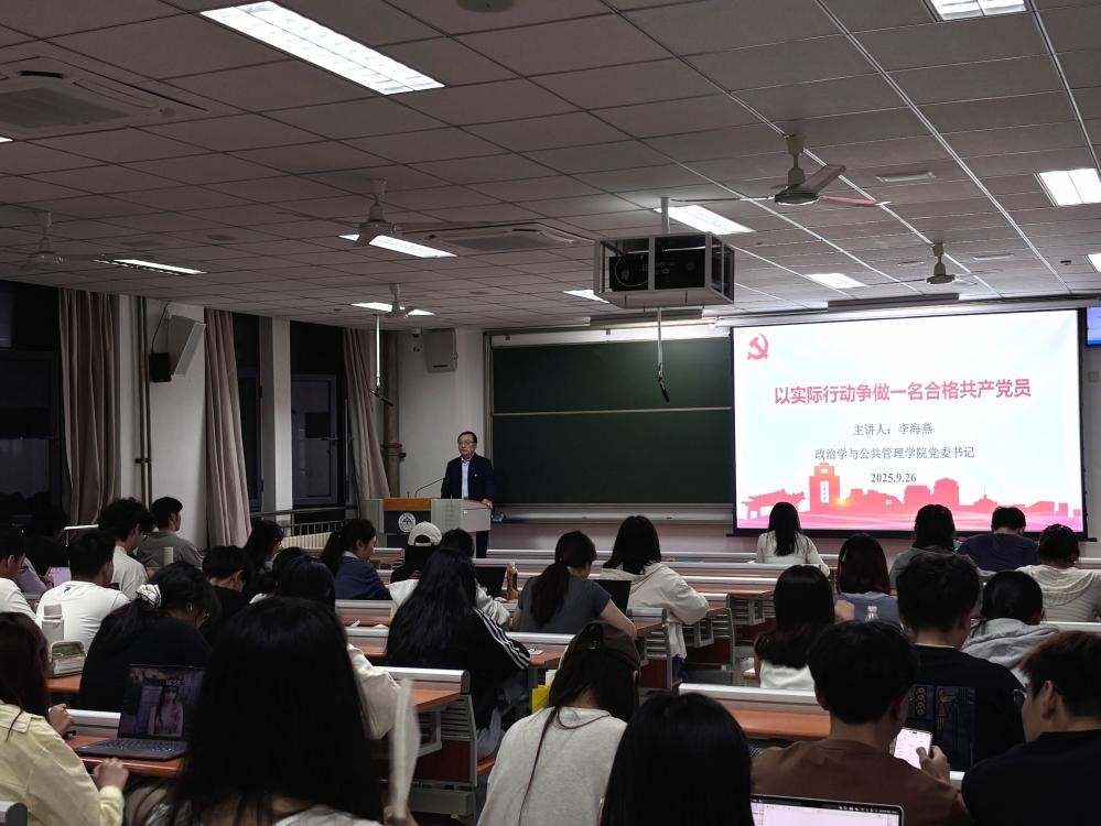 李海燕围绕新时代共产党员的标准要求进行了系统阐述。他强调,必须牢固树立为共产主义事业奋斗终身的坚定信念。要自觉接受党组织的培养教育和考察,严格履行入党手续,在理论学习和实践锻炼中不断提升党性修养。要努力做到政治合格、执行纪律合格、品德合格、发挥作用合格,将崇高理想信念转化为服务同学、奉献社会的实际行动,在日常学习生活中切实发挥先锋模范作用,以实际行动争取早日成为一名合格的共产党员。