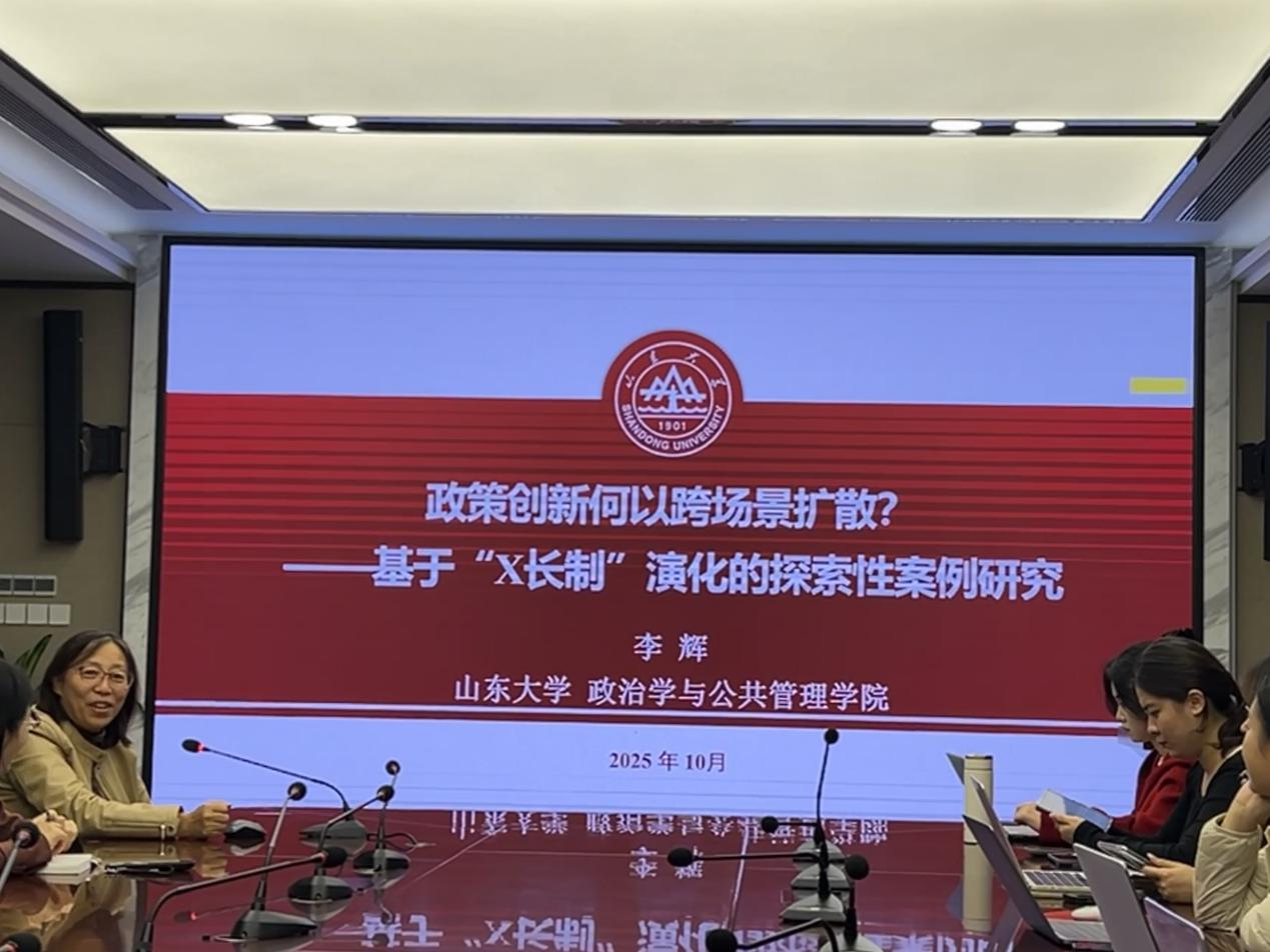 公共管理系第一期在华岗苑南楼举行。讲座由公共管理系主任费立国主持,特邀学院李辉教授作为主讲嘉宾,围绕其发表于权威期刊《政治学研究》的论文《政策创新何以跨场景扩散?——基于“X长制”演化的探索性案例研究》展开分享与研讨。