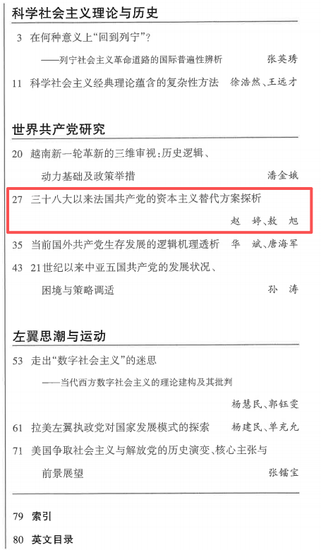 2023届中共党史专业硕士毕业生)合作发表在《社会主义研究》2025年第3期的论文《三十八大以来法国共产党的资本主义替代方案探析》被中国人民大学书报资料中心复印报刊资料《世界社会主义运动》2025年第5期全文转载。