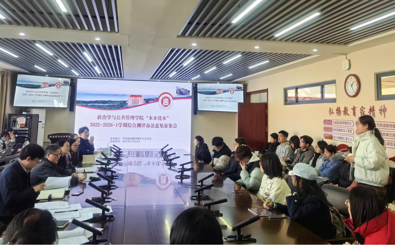 于 12 月 4 日召开2025-2026学年第一学期期中教学检查座谈会暨综合测评办法意见征集会。学院领导、教师代表、本科教务秘书、各年级辅导员及四十余名学生代表参加会议。