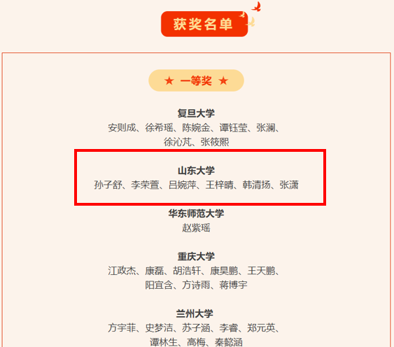 李梦丹老师指导,孙子舒、李荣萱、吕婉萍、王梓晴、韩清扬、张潇六位同学组成的团队荣获一等奖。该赛事由武汉大学马克思主义学院联合全国多所重点马克思主义学院于2025年8月发起,吸引了来自清华大学、中国人民大学、复旦大学等109所高校的1000余名同学参赛。经严格评审,最终评选出获奖作品87份。