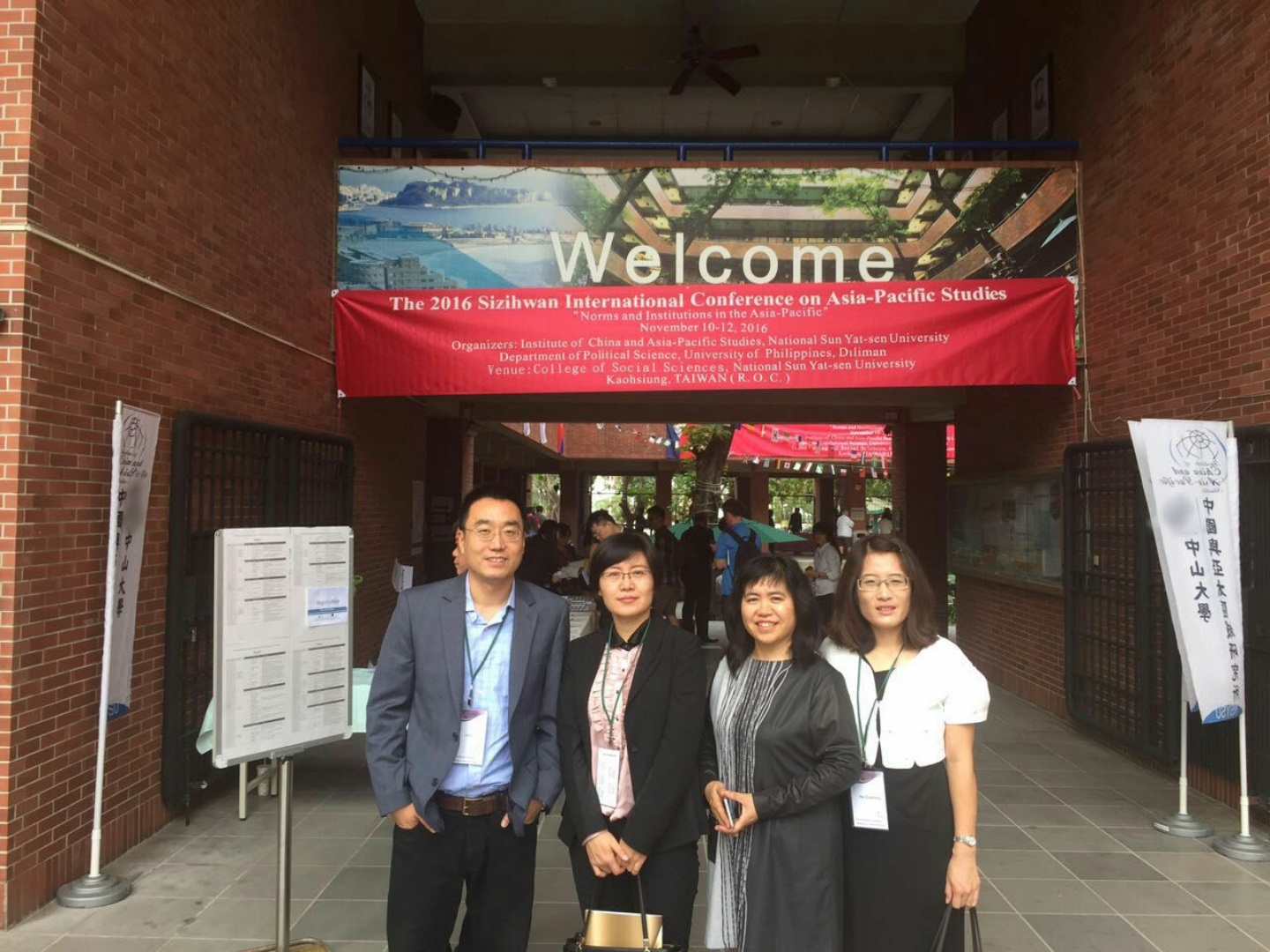 亚太研究所的学术代表团的刘琳副教授、王美玲副教授、季丽新副教授、和春红副研究员一行四人参加了2016年台湾中山大学与菲律宾迪里曼大学(University of the Philippines Diliman)共同举办的2016年台湾中山大学西子湾亚太研究国际会议(The 2016 Sizihwan International Conference on Asia-Pacific Studies),本届会议主题为“亚太区域的规范与制度”(Norms and Institutions in the Asia-Pacific)。