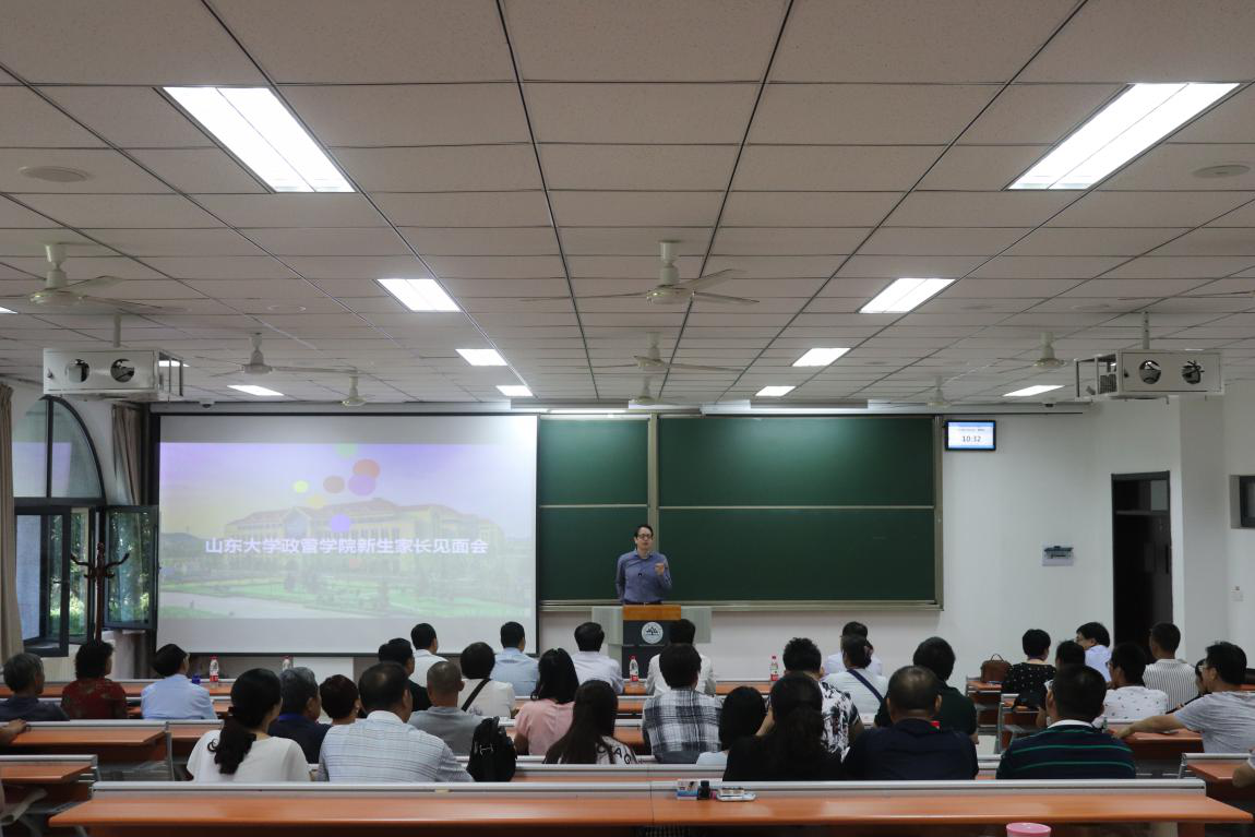 见面会由院团委书记、2018级辅导员桑伟林主持。贝淡宁首先向各位学生家长表示欢迎与感谢,预祝各位家长的子女早日成才。随后,曹现强介绍了我院的专业设置、教学配置、师资力量、考研就业等基本情况。盖玉强对对学院的人才培养措施做了详细的介绍,并希望家长与学校加强沟通,共同关注学生成长成才,提高学生的综合素质。董雪梅与家长交流了学生成长过程中可能面临的问题,并呼吁家长和学校能形成合力,为学生的成长成才保驾护航。随后的交流环节中,家长们就关心的就业前景、专业方向、学生管理、如何提高学生专业能力、交换生申请、转专业申请、奖学金等问题进行了提问,学院领导和辅导员现场给予了解答。