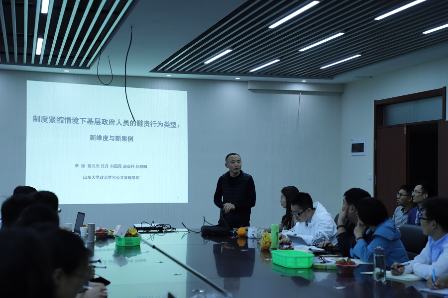 沙龙开始,首先由李振老师分享了题为“制度紧缩情境下基层政府人员的避责行为类型:新维度与新案例”的研究,其将避责行为置于国家制度建设中进行讨论,创新性地提出了对于避责行为的新分类,并结合某地取缔“关爱之家”特殊儿童教育中心的案例对避责行为进行具体的分析。