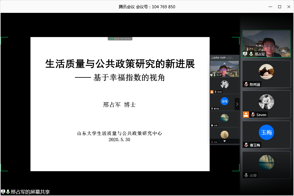 生活质量与公共政策研究中心通过在线形式举办了“生活质量与公共政策研究的新进展”学术沙龙。邢占军教授首先做了专题讲座,随后同学们围绕主题进行了交流和分享。中心部分博士和硕士研究生参加了活动。