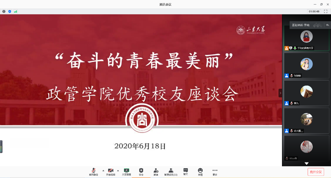 “奋斗的青春最美丽”优秀校友座谈会。学院邀请5位优秀院友与毕业生开展线上座谈,讲述奋斗故事,分享成长经历,共话成长感悟, 帮助毕业生实现“职场人”这一角色转变。