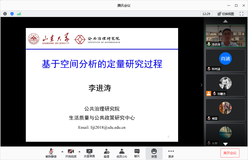 生活质量与公共政策研究中心通过在线形式举办了第二期学术沙龙,主题为“基于空间分析的定量研究过程”,中心专任研究员李进涛做了专题讲座,同学们围绕主题进行了交流和分享。中心专任研究员褚雷主持此次活动。部分博士和硕士研究生参加了活动。