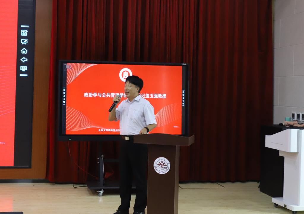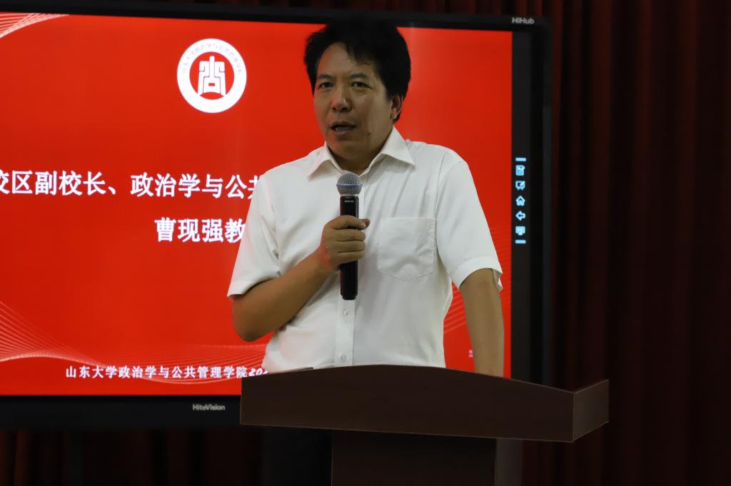 首先,曹现强全面地介绍了学校、青岛校区与学院的历史,代表青岛校区和学院对新同学们的到来表示祝贺和欢迎。他指出在“两个大局”的新阶段,国家面临着公共领域变革和国家治理改革的挑战,希望同学们应保持探索世界、求所真知的好奇心,拥有开放交融的大格局。曹现强还系统地介绍了专业现代化工程的建设情况,并结合特色班的建设现状,总结了校区与学院在推进学科交叉融合中作出的努力与成果。随后,他鼓励同学们在入学的新阶段确立追求卓越的决心与习惯,表达了对于同学们成为正直有爱的政管人的希望。