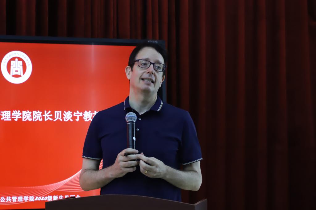 贝淡宁首先表达了对2020级新生的欢迎,对于山大学生好学特质的赞赏,并详细介绍了青岛校区的良好学习环境和自然景色,希望同学们能够在具有优美环境的青岛校区校园里,与众多良师益友为伴,不断探索与创新。同时,他也鼓励同学们发现自己的爱好与兴趣,多进行跨学院选课,了解其他专业知识,在青岛校区收获成长,收获美好。