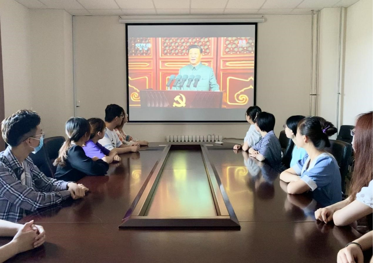 师生党员在华岗苑南楼五楼报告厅集中观看了大会盛况直播,感悟百年党史,聆听习近平总书记教诲,启航新的征程。