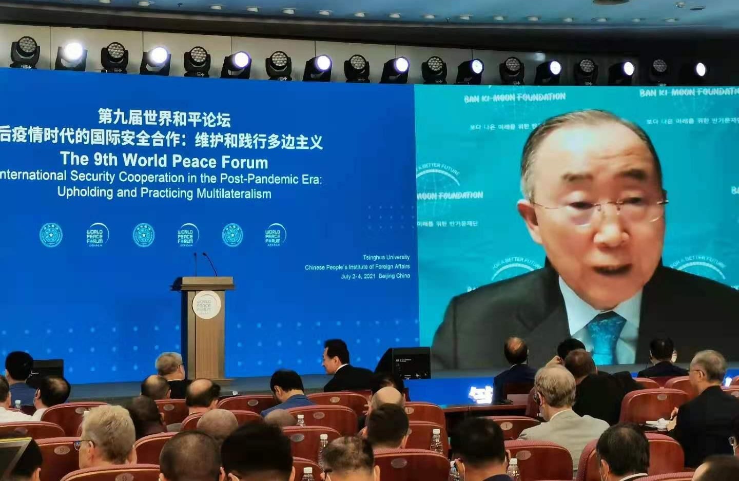 潘基文在演讲中说,今天我们面临着一系列正在出现的全球危机和不确定性,使我们有必要重新审视国际秩序和国际格局。我们必须要进行国际合作,来解决国际挑战,包括现在和今后将要面临的挑战。