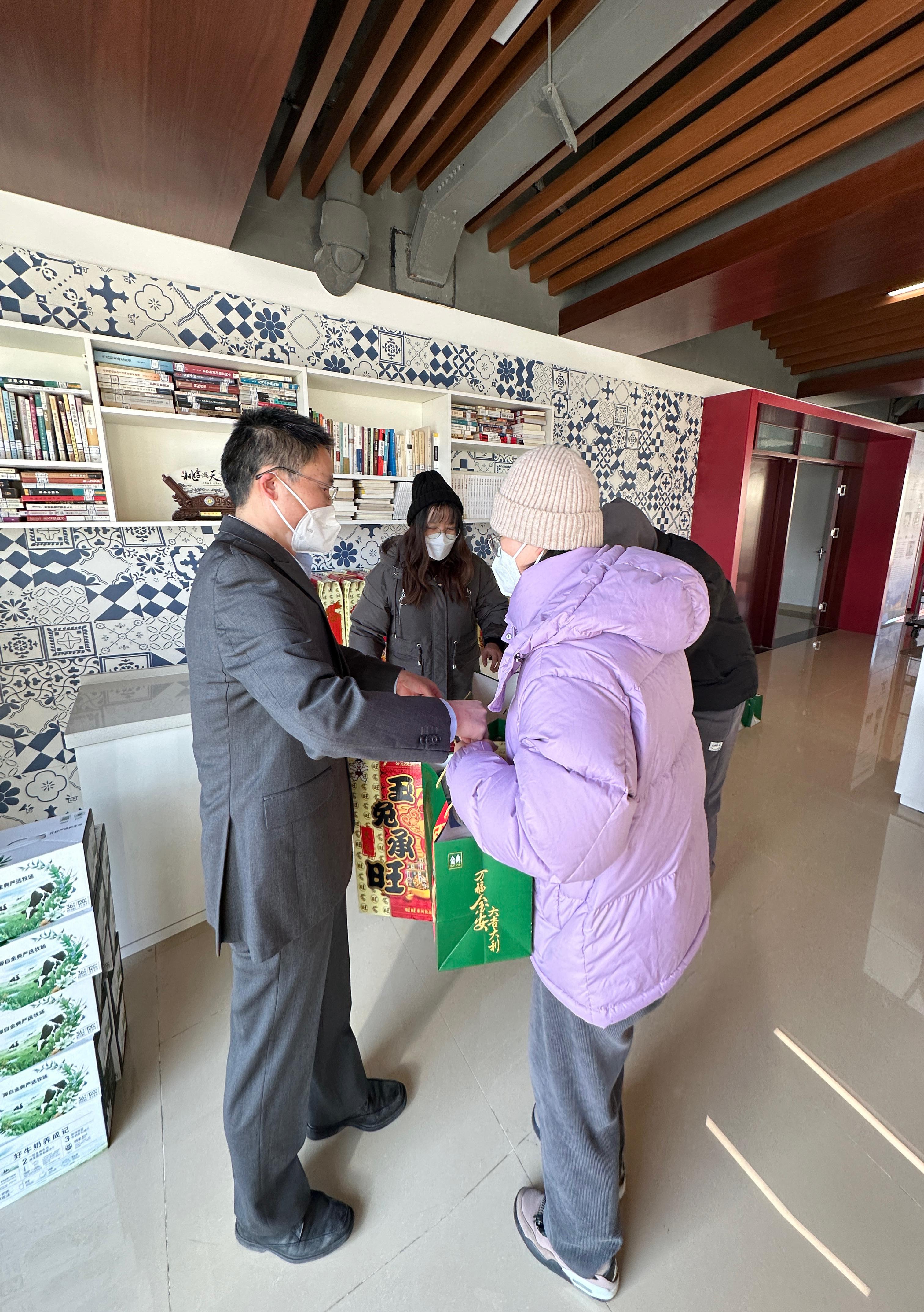 “你是学什么专业的?”“导师是哪位老师?”“科研进展如何”“不回家过年,家里人都还好吗”“最近身体状况如何”……朱院长见到同学们后,详细了解同学们寒假期间的学业情况和生活状况。他叮嘱同学们当前一定要做好个人防护,保重身体,当好自身健康第一责任人;注意做好个人防护和健康保障,提高安全意识,注意寝室卫生与用电安全,并叮嘱大家在照顾好自己的同时,也要同家长、导师多保持沟通联系,及时报平安,让家人放心、安心。此次走访慰问,学院为留校学生送去了新春礼包以及防疫物资,希望同学们在校度过一个欢快祥和、安全健康的假期。